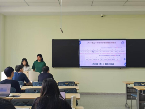 为强化学生日常管理,学院以“五一”假前教育为契机,持续推进学风建设。学院通过双线机制,组织班级开展自查,辅导员随机抽查课堂出勤情况,每周汇总分析数据并进行通报处理。切实提升学生课堂纪律意识,营造严考勤、促学风、强管理的良好氛围。
