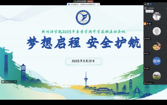 2月12日至13日,各班班主任根据学院会议要求,通过腾讯会议的方式全覆盖的开展了开学前安全教育班会。
