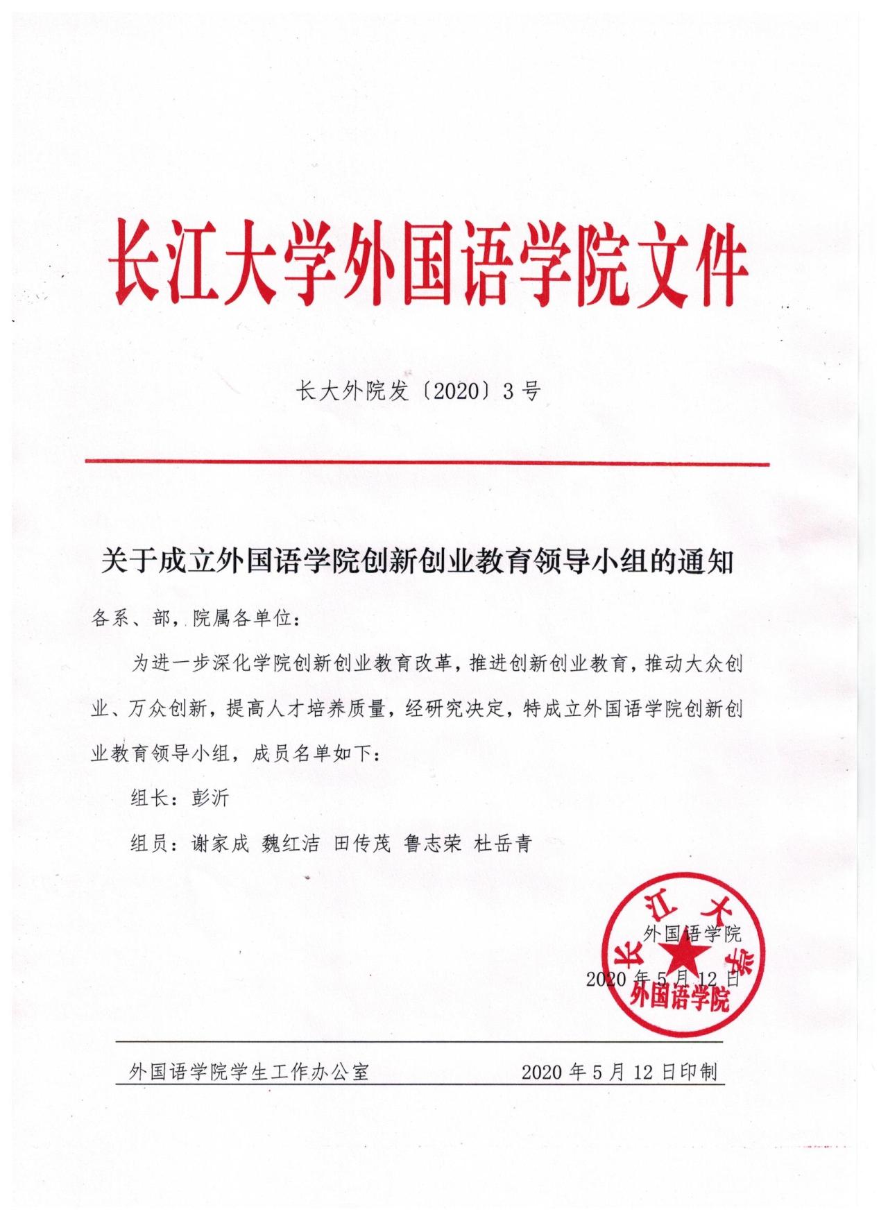 关于成立乐鱼平台创新创业教育领导小组的通知