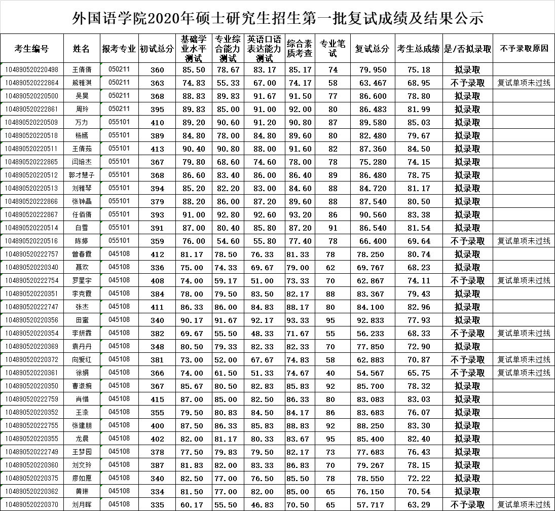 【复试结果公示】乐鱼平台2020年硕士研究生招生第一批复试成绩及结果公示