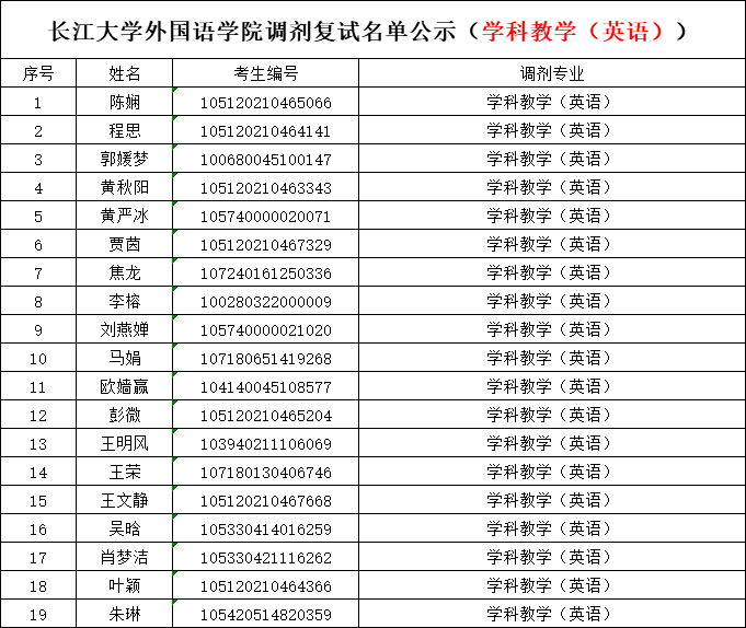【调剂复试名单公示】乐鱼平台(中国)调剂复试名单公示(学科教学(英语))