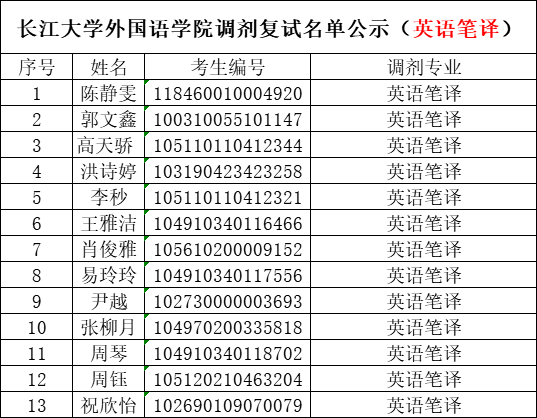 【调剂复试名单公示】乐鱼平台(中国)调剂复试名单公示(英语笔译)