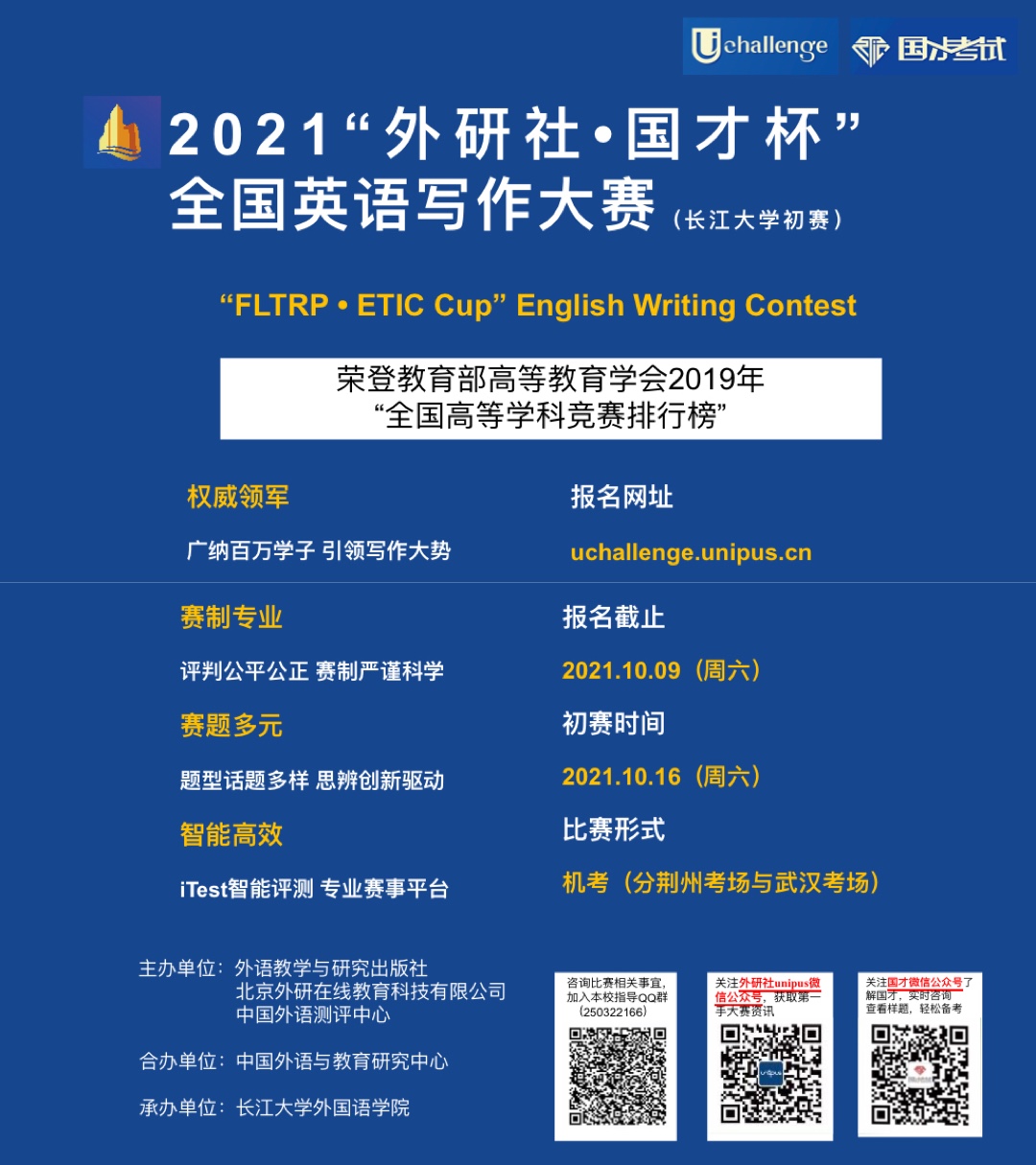 全国英语写作大赛长江大学初赛时间:2021年10月16日上午;