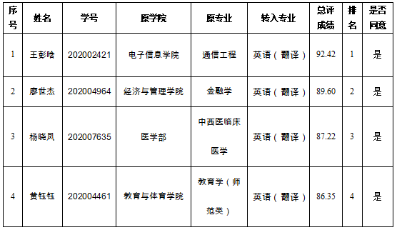乐鱼平台2020级本科生秋季学期转专业拟接收名单公示
