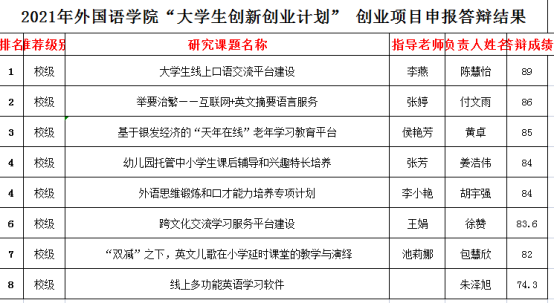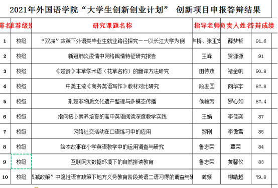 2021年乐鱼平台“大学生创新创业计划” 项目立项结果公示
