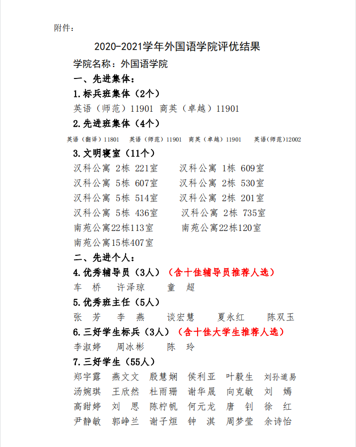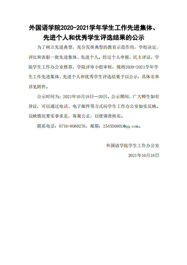 乐鱼平台2020-2021学年学生工作先进集体、先进个人和优秀学生评选结果的公示