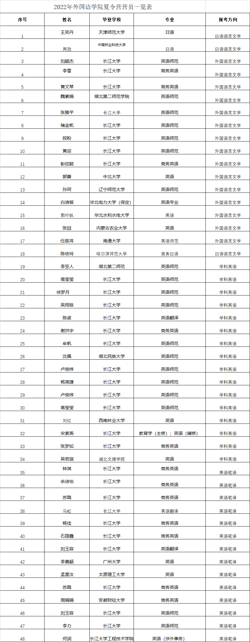 2022年乐鱼平台(中国)夏令营营员名单公示