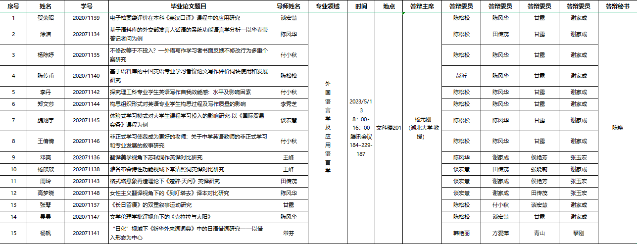 乐鱼平台2023年6月毕业研究生学位论文答辩安排
