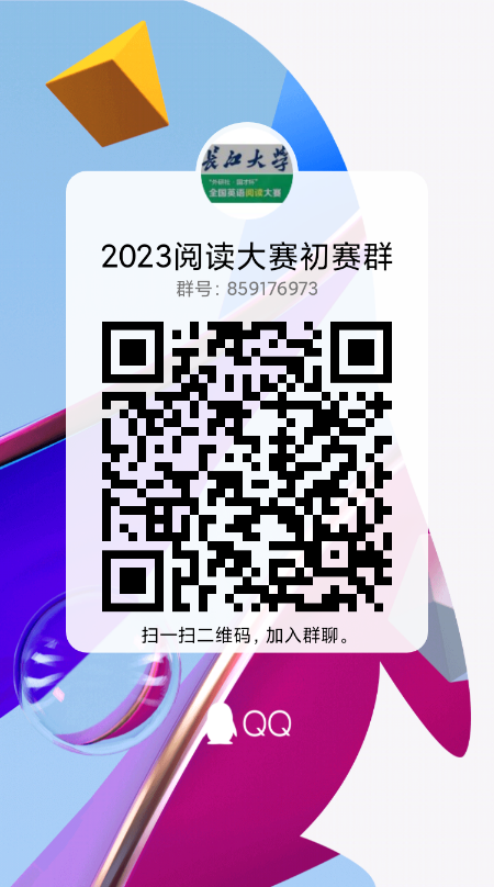 3.所有参赛选手在完成报名后请加入我校“2023阅读大赛初赛QQ群”(群号:859176973)。所有后续相关事宜将统一在QQ群内说明。
