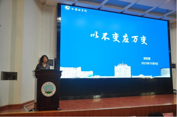 在备受期待的“开学第一课”环节,院长谈宏慧教授以“以不变应万变”为主题,深刻阐述了新时代外语人才的培养方向。谈院长指出,面对瞬息万变的国际环境,外语人应坚守语言学习的核心要义,夯实基本功,同时培养跨文化沟通能力与全球视野。她强调,真正的外语人才不仅需要精湛的语言技能,更要具备深厚的家国情怀、坚定的文化自信和与时俱进的创新能力,以此在变革的时代中把握不变的本质,行稳致远。