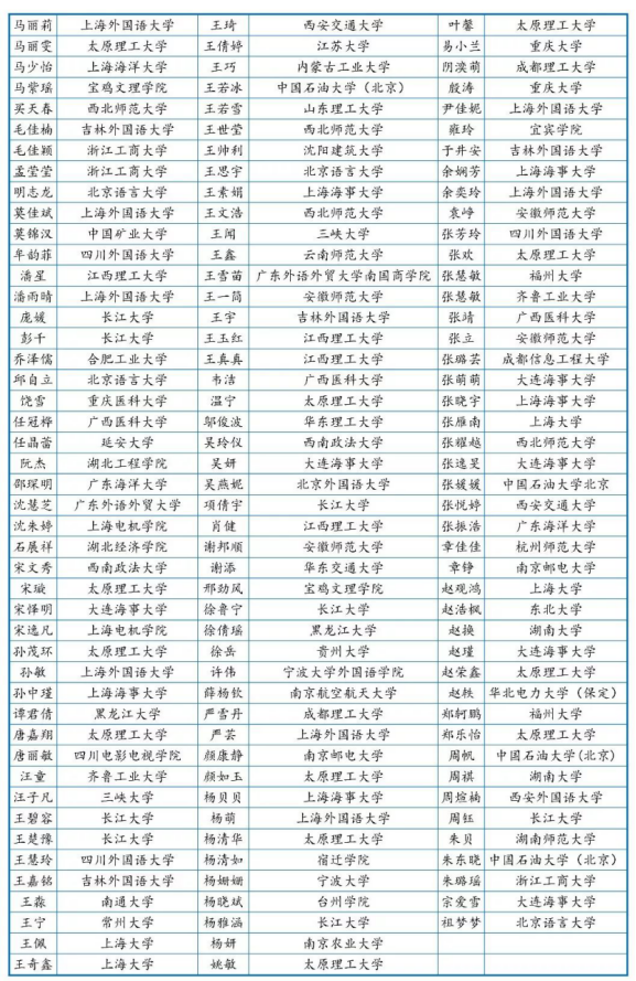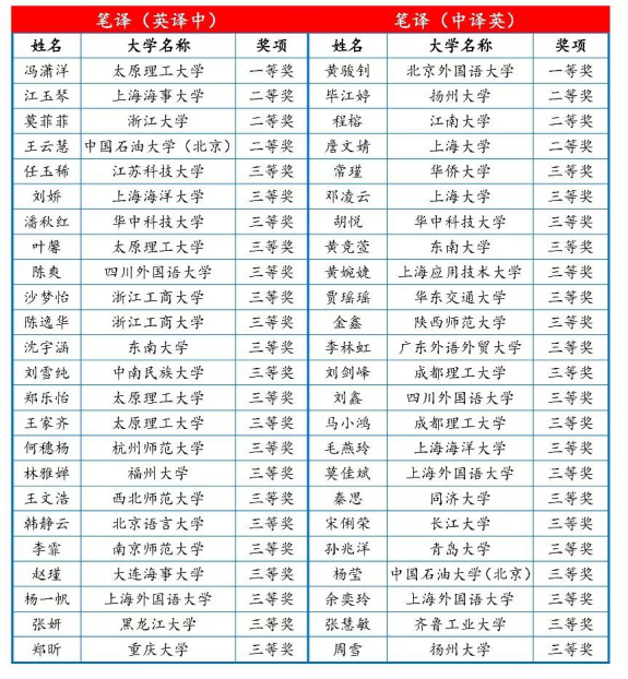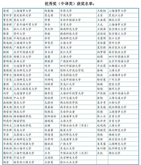 优秀奖(英译中)获奖名单: