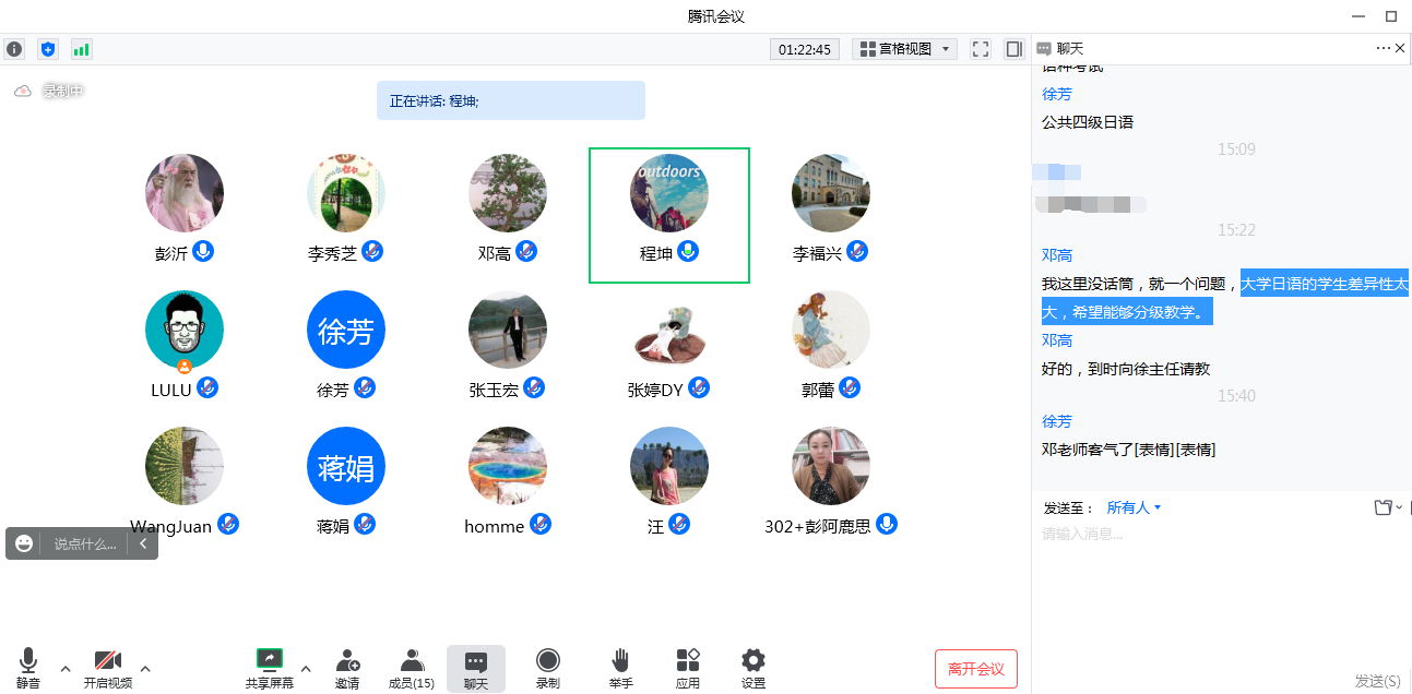 (通讯员 张露)11月11日下午,乐鱼平台通过线上腾讯会议方式,召开了2022-2023学年第一学期期中教学检查教师座谈会。本次座谈会是我院常规教学管理环节之一,旨在解决学院在教育教学中存在的实际问题,进一步提高教学质量,深化教育教学改革,切实增强立德树人实效。