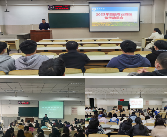 为更好帮助乐鱼平台2021级本科学生提高专四备考效率,营造比拼赶超的学习氛围。3月16日下午,学院在12教101、102、104室分别举办了英语、商务英语和日语专业四级经验交流会。各系部主任、副主任、相关专业老师、辅导员、优秀学生代表以及2021级全体本科生参与本次动员大会。