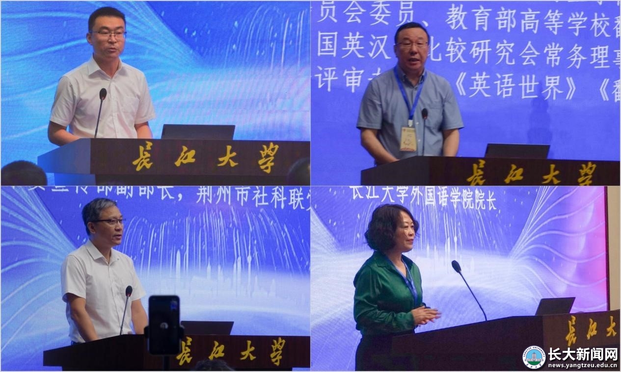 长江大学党委常委、副校长吕一兵,中国译协翻译理论与教学委员会副主任、湖北省翻译工作者协会会长、武汉大学博士生导师刘军平,中共荆州市委宣传部副部长、市社科联党组书记、主席黄道培出席开幕式并致辞。开幕式由乐鱼平台(中国)院长谈宏慧主持。