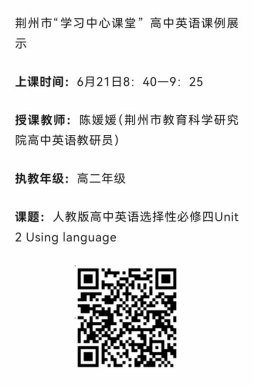 (通讯员 何康林)6月21日,荆州市教育局主办的“荆州市‘学习中心课堂’高中英语课例展示”活动在线上直播。乐鱼平台2021级全体师范生观摩了此次教学创新实践。