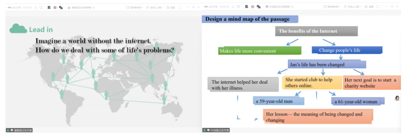 潘美琪与叶淑慧两位同学围绕高中必修二Unit 3“Stronger Together: How We Have Been Changed By The Internet”这一课题,分别进行了读思课的同课异构教学展示。洪湖一中的唐甜老师对两节课作了专业点评。唐老师充分肯定了两位同学在教学环节的完整性、课堂互动的有效性以及课前准备的充分性等方面的表现。同时,她也从多个维度提出了宝贵的改进建议,包括导入环节的优化、学生互动的深入引导、PPT呈现的精炼增强,以及问题设置的层次提升。唐老师特别强调,本节课可在最后增加课程思政的升华部分,将互联网发展与社会责任、集体精神等价值理念有机结合,实现立德树人的教学立意。