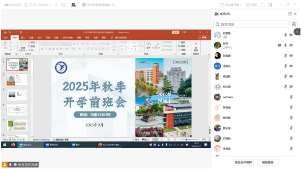 (通讯员 王泽秀)为扎实做好2025年秋季开学各项准备工作,进一步增强学生安全意识,尽快适应新学期学习和生活,9月1日至3日,学院本科生和研究生各班级召开秋季开学前线上安全班会。本次班会围绕返校安排、健康管理、开学工作提示、安全教育及常态化学风建设五大内容展开,确保全体学生明晰开学相关事宜,以良好状态迎接新学期,班会由各班班主任主持。