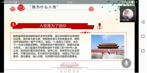 第三部分是“我为什么入党”的讨论,各团支部团员对此展开了讨论,积极说出自己的想法,有的回答入党是为了信仰,有的回答是为了学习先进思想,各班的讨论环节积极而热烈,树立对共产主义远大理想和中国特色社会主义共同理想的信仰,坚定跟党走中国特色社会主义道路的信念,