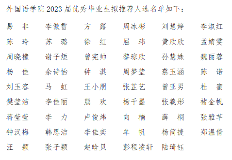乐鱼平台2023届优秀本科毕业生拟推荐人选名单公示