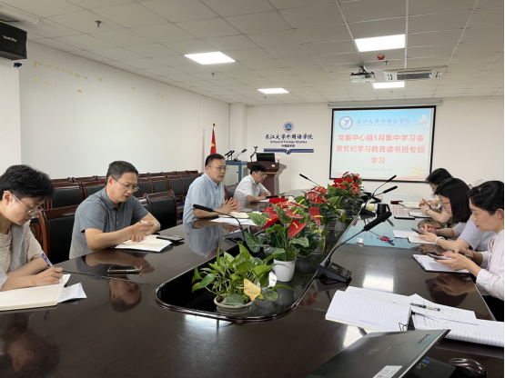 (通讯员 肖娜芸)5月27日下午,院党委理论学习中心组在文科楼712会议室组织召开5月集中学习会暨党纪学习教育读书班专题学习。院党委书记周杰主持会议,中心组成员参加学习。