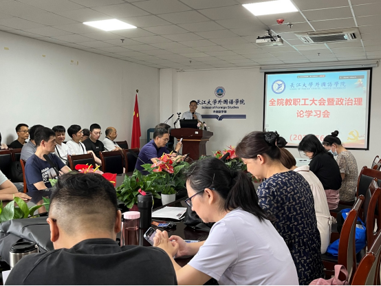(通讯员 肖娜芸)7月1日下午,乐鱼平台在文科楼712会议室召开全院教职工大会暨政治理论集中学习会。会议采用线上线下相结合的方式进行,学院全体教职工参加了此次会议。