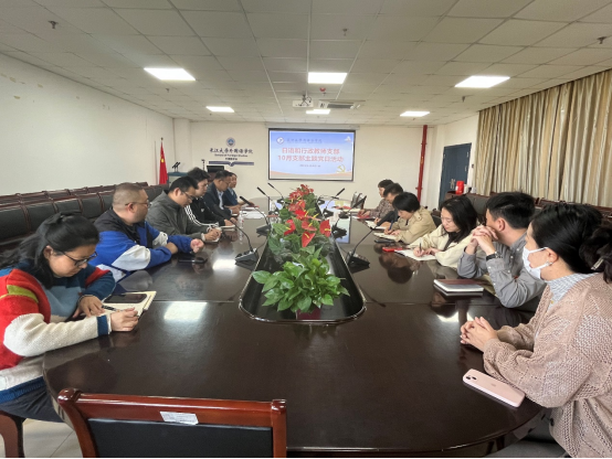 (通讯员 肖娜芸)10月31日下午,日语和行政教师党支部在文科楼712会议室开展10月支部主题党日活动,院党委书记为党员讲授了专题党课。