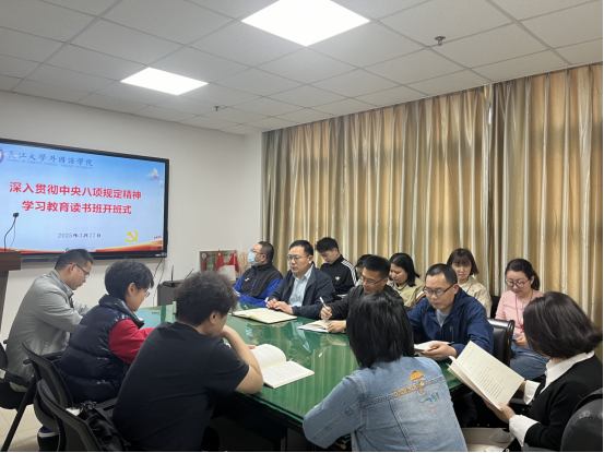 (通讯员 肖娜芸)3月27日上午,乐鱼平台在文科楼814会议室组织召开深入贯彻中央八项规定精神学习教育读书班开班式,正式拉开全院作风建设与理论学习深化行动的序幕。院领导班子成员参加会议,各系部室负责人及教师党员代表列席会议。院党委书记周杰主持会议。