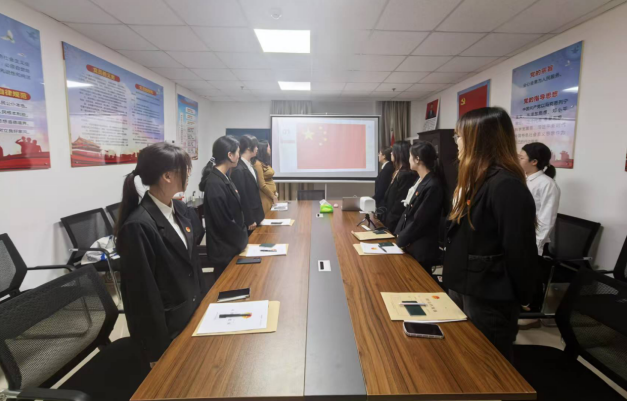 仪式在庄严的国歌声中开启,全体人员齐唱国歌。