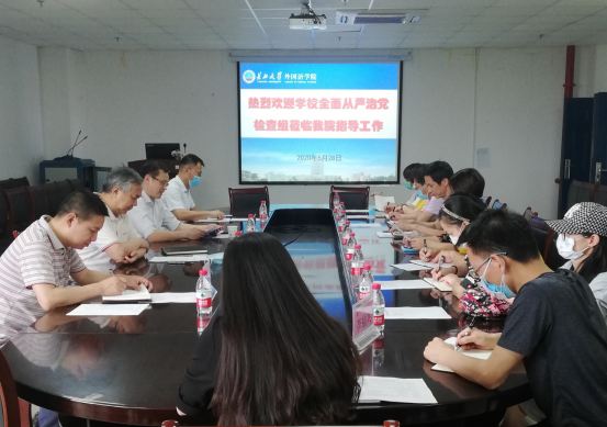 5月28日下午,以校党委常委、副校长张大平为组长,校工会常务副主席王勇、校团委副书记秦良斌、学校办公室科长陆峰为组员的校党委全面从严治党第七检查组莅临乐鱼平台,对学院2019年以来全面从严治党工作进行了检查指导。