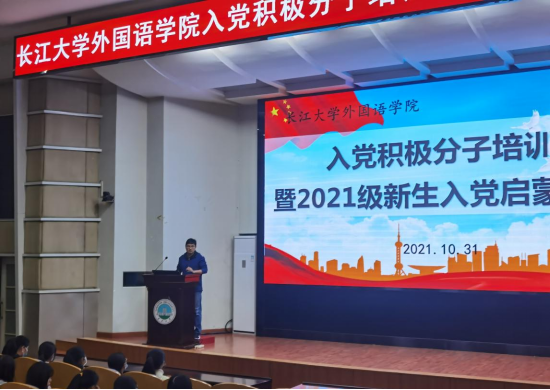 为全面贯彻党史学习,引领新时代大学生树立崇高的理想信念和报国之志,10月31日晚,乐鱼平台在东校区12教405开展主题为“弘扬建党精神,担当时代使命”的入党积极分子培训暨2021级新生入党启蒙教育讲座。讲座由院党委书记危煜祥主讲,全体2021级新生、2021年入党积极分子参加,院党委副书记程坤主持。