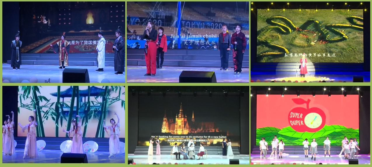 闭幕式文艺汇演在精彩的舞蹈中开场。分为“盛世华章,继往开来,初心难忘谱新曲”“激扬青春,强国有我,英姿奋发正当时”两个篇章。整台晚会彰显特色、突出专业、精彩纷呈,线上观众热情高涨。汉语、英语、日语、俄语、法语5个语种演唱的歌曲《追梦赤子心》,带领观众领略不同语言的魅力;笛萧合奏《无羁》,古风古韵,回味无穷;外文剧团呈现的经典剧作《Midnight in Poris(午夜巴黎)》,地道的英语、绅士且高雅的表演、华丽的场景深深打动着观众们的心;日语配音节目《辉夜姬大小姐》、教师韩艳丽博士倾情演唱的蒙语歌曲《忘不了》等节目全面展示了不同语言的文化底蕴与特色……乐鱼平台师生用丰富的艺术形式展现多彩校园文化生活。颁奖晚会在合唱《光荣啊,中国共青团》中圆满落幕。
