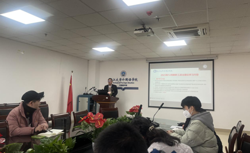 12月19日下午,学院在文科楼712会议室集中开展12月支部主题党日活动暨教职工政治理论学习会。会议由学院党委书记周杰主持,全体党员教师通过线上线下结合的方式参加。