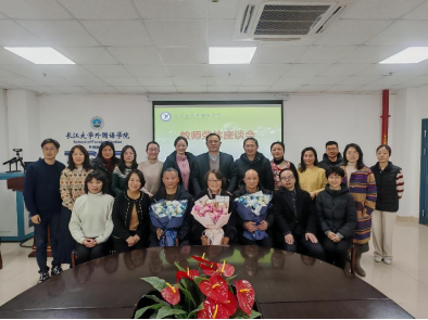 随后,三位荣休教师依次发言,回忆起从教生涯的点点滴滴,眼中满是眷恋与不舍。夏永红老师讲述了与荆州博物馆合作进行中国文化宣传的难忘经历,吴亚华老师分享了参与编撰教材与运用到课堂教学的融合经验,徐灵老师提及那些年在一工部教学生活的日子,情到深处,令人动容。