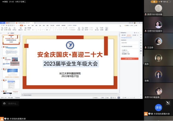 为确保学生国庆期间以及在校期间安全,严防各类事故发生,牢牢守住安全底线,迎接党的二十大胜利召开。9月27日,乐鱼平台组织本科生及研究生各班召开“安全庆国庆·喜迎二十大”主题班会,会议采用线上线下结合模式。班会围绕疫情防控、防诈骗教育、防溺水安全教育三个方面展开。