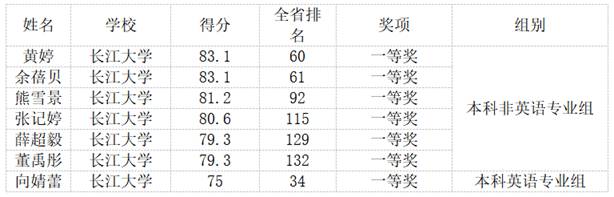 省赛中,每组别成绩排名前5%的选手晋级全国决赛。经过激烈角逐,我校本科非英语专业组6名选手、本科英语专业组1名选手获得省赛一等奖,晋级全国决赛。