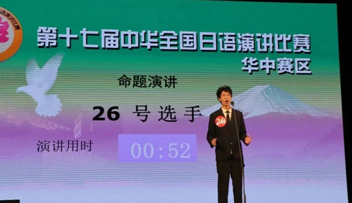 (通讯员 张芳)近日,第十七届“中华全国日语演讲比赛”华中赛区分赛在华中师范大学成功举办。本次比赛共有来自湖北、湖南、安徽、河南4省的32名选手同台竞技,经过命题演讲和即兴演讲两个环节的激烈角逐,我校日语语言12101班的杨文韬同学以总成绩第五的佳绩获得了比赛二等奖。