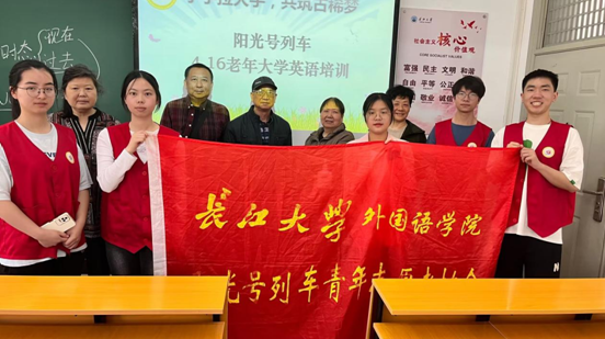 “银发助学”——乐鱼平台 “阳光号列车”开展青年红色筑梦之旅之线下“老年大学”英语教学活动