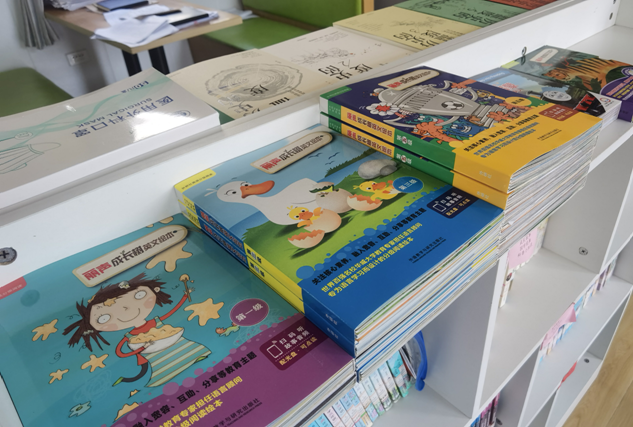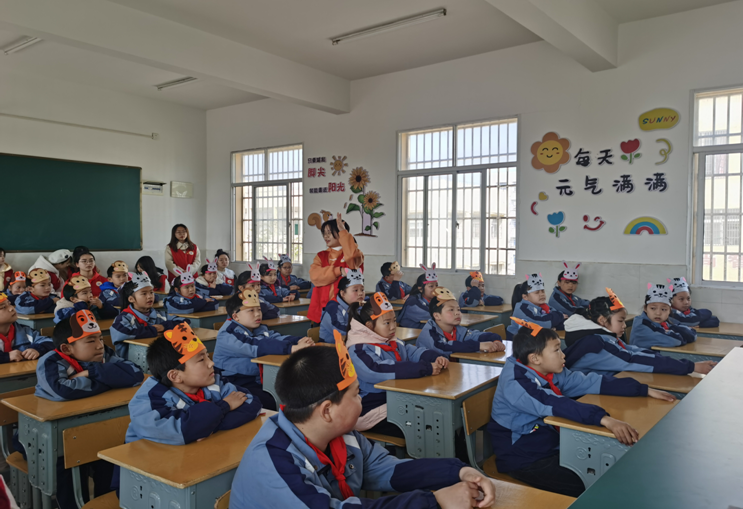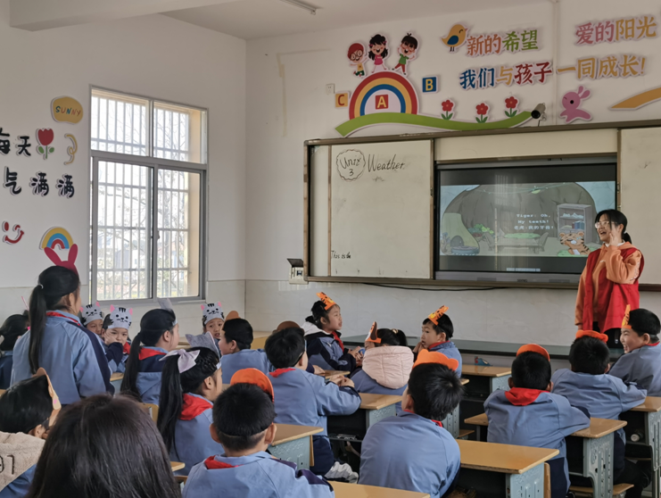 随后,“阳光号列车”志愿者在多功能教室为毛家港小学四年级的小朋友们带来了一节生动有趣的英语绘本启蒙观摩课。授课开始,志愿者们通过绘本故事激起孩子们的好奇心,在授课过程中,志愿者们通过英语动画短片将教学内容和思政元素并用植入课堂,用角色扮演引导小朋友积极发言,整堂课程设计新颖,气氛热烈,受到小朋友和观摩教师的一致好评。
