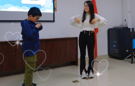 助教老师侯薇同学正在带领小朋友和大家一起展示。