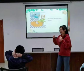 随后,焦同学通过有趣的食物图片以及实物展示,有效帮助孩子们理解绘本里英文单词的含义,并通过与孩子们进行互动问答的方式,更好地帮助他们掌握重点英语表达,如“How about some…?”的句型表达。