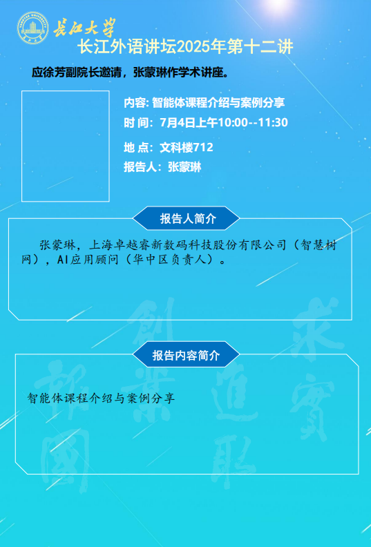 长江外语讲坛2025年第十二讲:智能体课程介绍与案例分析