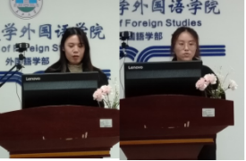 首先由张靖谊为大家做了汇报,她的报告主题是:英语转专业学生的学习动机研究。首先,她对自己的选题依据进行了介绍,包括:研究背景、研究贡献和文献回顾。她指出了不同年级的外语学习者转专业的动机,主要包括心理需求、归属感、自我满足感等。接着她讲述了自己的研究设计,包括:研究问题、研究目的、研究工具。初步对自己的研究进行了假设,指出会在今后的研究中采取问卷调查以及量表等研究方法相结合的方式进行研究。最后,提出了研究中可能会遇到的问题:在研究过程中数据的收集和分析方面会遇到困难。然后,吴晓纯向大家介绍了外语教师发展与研究的阅读分享。首先,她对国内外(外语)教师教育发展时间点进行了详细地梳理,并从不同方面定义了教师发展的内涵:教学内容上包括广泛的知识和技能的学习,教育时段上囊括职业生涯,如职前、入职和在职教育,组织方式上既有正规学校教育,也有各种形式的非正规教育。教师发展一方面是以教师自主发展能力和发展意识的培养为目标,另一方面是教师通过自主发展意识和自主发展能力在教学实践过程中所进行的自主发展。接着,她提出了外语教师发展研究焦点主要集中在:语言教学的隐喻、语言教师职业生涯、语言教师的新角色三个方面。最后,她向与会的同学们推荐了有关外语教师教育相关的书籍。汇报结束后,同学们积极提问,两位主讲人也对大家的疑问做出了详细的解答。