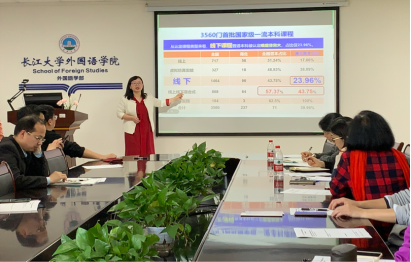 (通讯员:邓爽)4月22日下午,湖北师范大学乐鱼平台刘敏老师于文科楼712会议室,面对乐鱼平台全体教师开展了以“思政引领、六位一体、四维联动的国家级一流金课建设的研究与实践——以英国文学选读课程为例”为主题的讲座,此次讲座由乐鱼平台副院长彭沂主持。