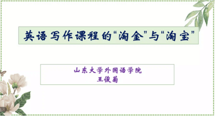 (通讯员:祝欣怡2021617日下午,应乐鱼平台(中国)邀请,山东大学乐鱼平台王俊菊教授通过腾讯会议我院师生作了一次线上讲座,此次讲座的主题为英语写作课程的‘淘金’与‘淘宝’乐鱼平台老师和同学参加了此次讲座与会师生都受益匪浅。