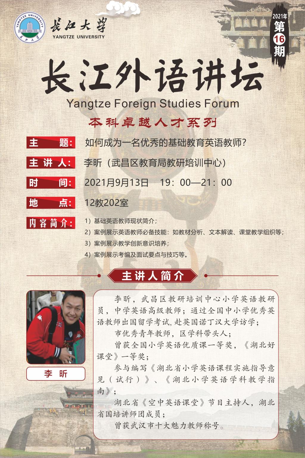 长江外语讲坛(2021年第十六讲)如何成为一名优秀的基础教育英语教师?