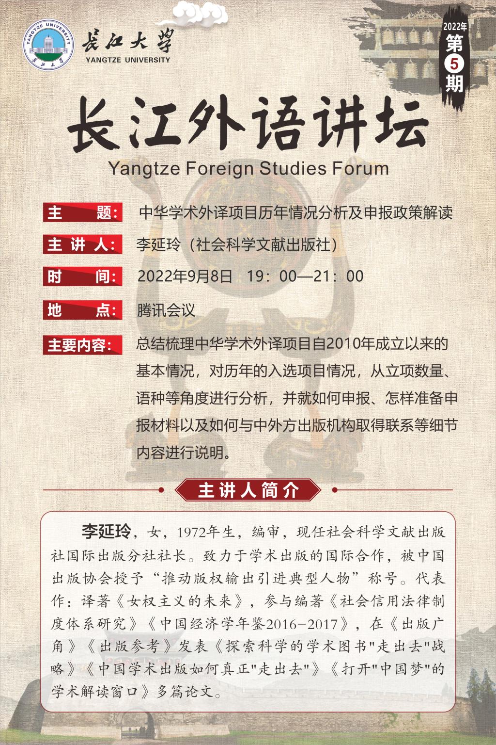 长江外语讲坛(2022年第五讲)中华学术外译项目历年情况分析及申报政策解读