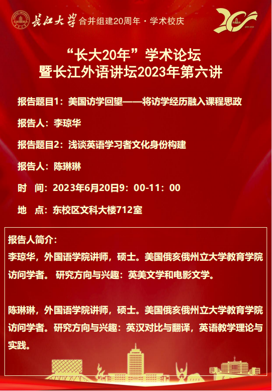 “长大20年”学术论坛暨长江外语讲坛2023年第六讲