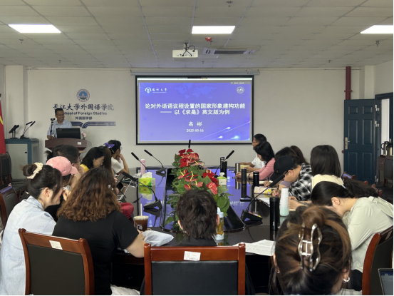 (通讯员 董琪)5月16日上午,长江外语讲坛2025年第四讲在文科大楼712室举行。应乐鱼平台邀请,扬州大学特聘教授高彬莅临讲坛,作了题为《论对外话语议程设置的国家形象建构功能——以<求是>英文版为例》的学术报告,乐鱼平台部分教师和研究生参加了本场讲座。讲座由蒋庆胜博士主持。