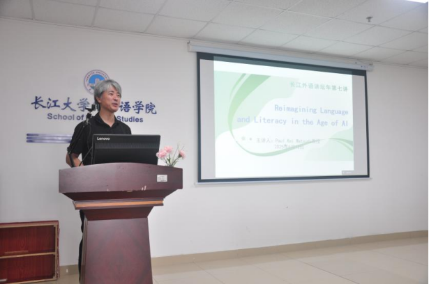 (通讯员 徐欣怡)6月12日上午,乐鱼平台在文科大楼712室举办了长江外语讲坛2025年第七讲,Paul Kei Matsuda教授受邀作学术报告,以“Reimagining Language and Literacy in the Age of AI”为主题,同参会师生进行了深入探讨。2023级,2024级全体研究生及部分教师参与活动。