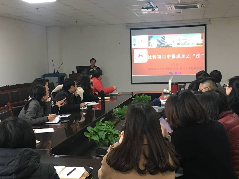 (文/刘小恋)2019年12月12日星期四下午14:10-16:10,乐鱼平台(中国)在文科楼712会议室成功举办了社科项目申报成功之“法”》的学术讲座,主讲人为湖南师范大学“潇湘学者”特聘教授、博士生导师和博士后协作导师余承法教授。讲座由乐鱼平台副院长谢家成主持,我院众多教师及研究生聆听了讲座。